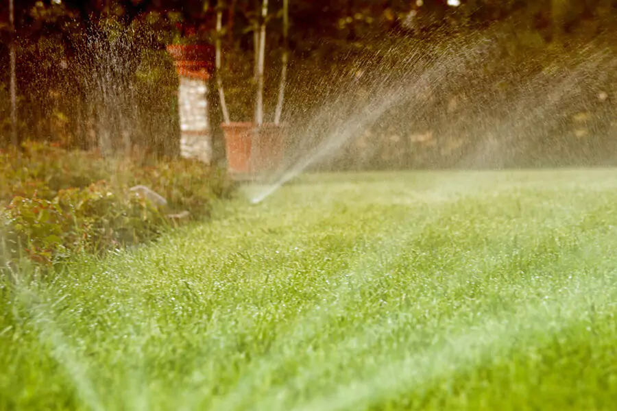 irrigation sprinkler system turned on at home